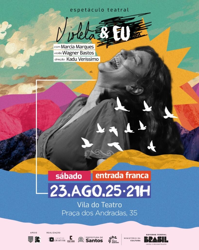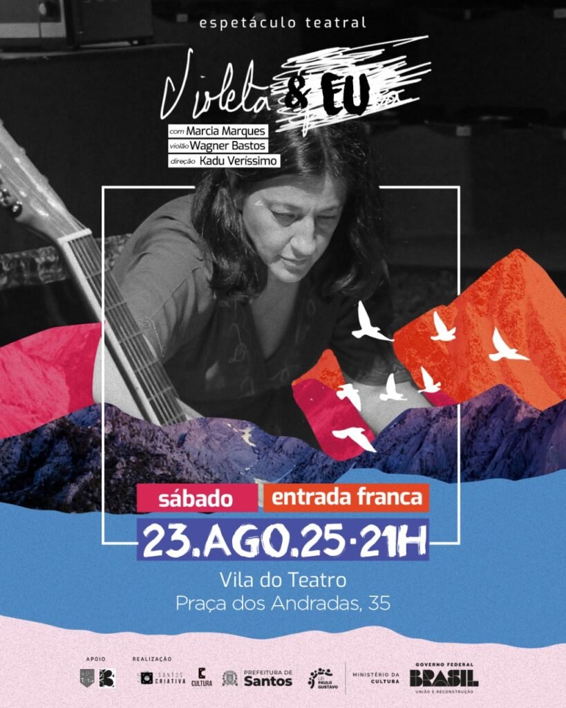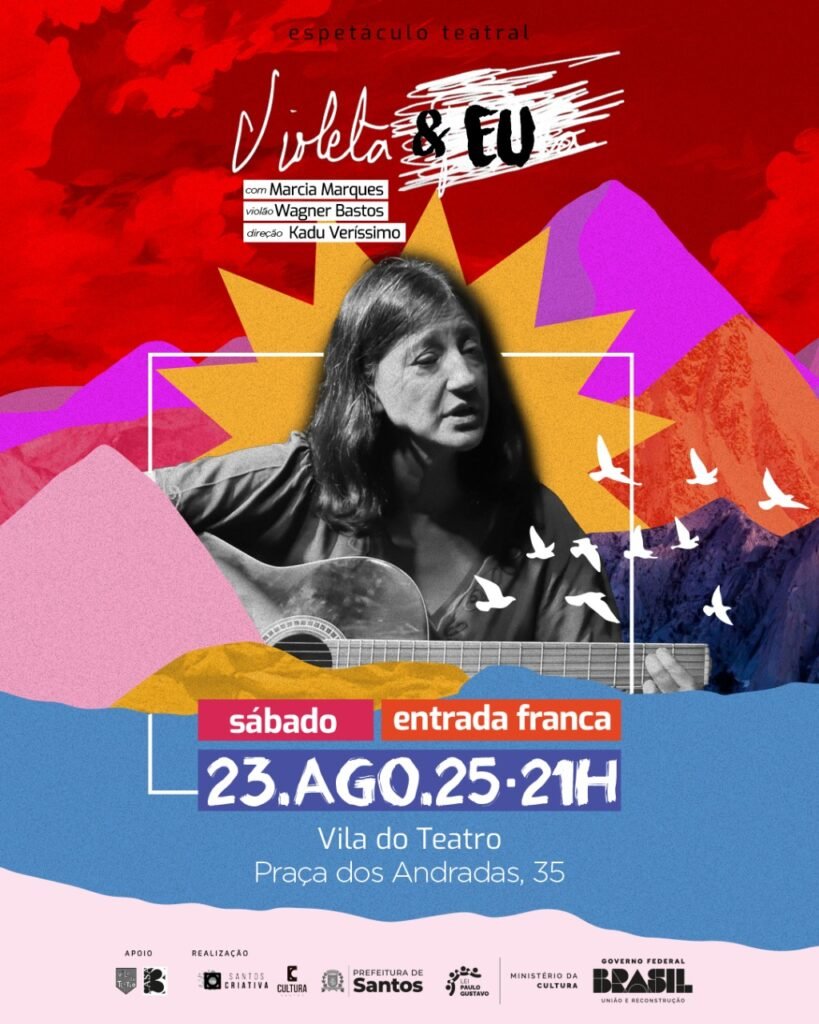 Violeta Parra, multi-artista chilena, falecida em 1967, e Márcia Marques, artista luso- brasileira, nascida em 1968, se fundem nesse espetáculo que mistura o real com a ficção para colocar em cena questões como a maternidade, amor, saúde mental, abandono, aceitação e morte .